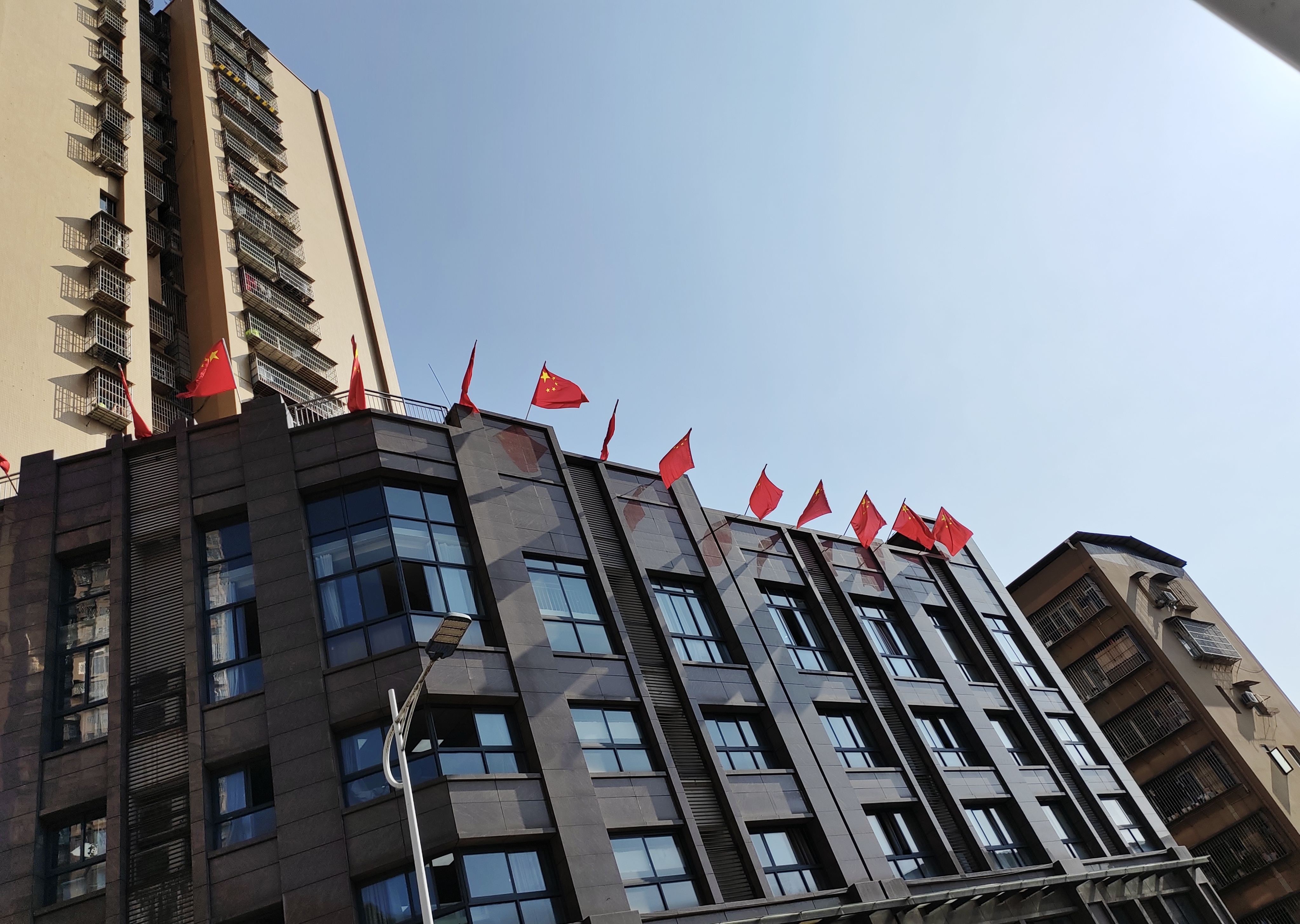 三是營造節(jié)日氛圍。在經(jīng)營辦公場所升掛起鮮艷的五星紅旗、點(diǎn)亮LED宣傳標(biāo)語,為即將到來的國慶佳節(jié)帶來喜慶祥和的節(jié)日氛圍。